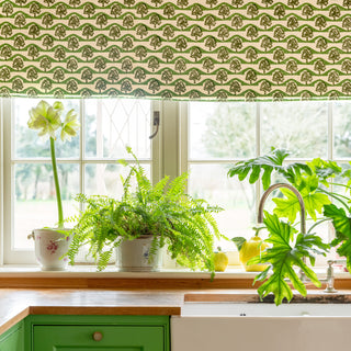 Named in celebration of the beautiful woodlands where Molly lives and works, this decorative block print features a detail of the curling, fiddlehead fern, which unfurls across the cloth in a delightfully delicate manner.