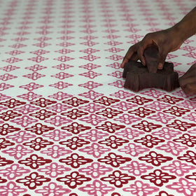 Berry Block printed Fabric Linen/Cotton Indigo/Sky
