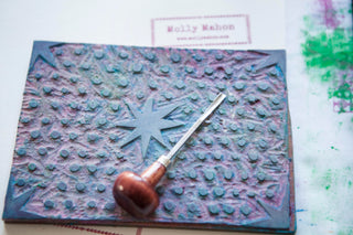 Inspired by nature, my travels to India and things that I notice in my daily life, I turn my images into repeat designs and carve them into a block.